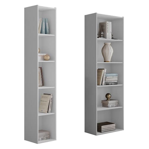 ESPECIFICAÇÕES: Estrutura MDP Pintura UV Prateleiras Estante de largura menor suporta até 13kg distribuídos Estante de largura maior suporta até 17kg distribuídos
