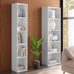 Kit Estante Livreiro Janaina e Luiza com Prateleiras - AJL Móveis O Kit Estante Livreiro Janaina e Luiza é perfeito para aqueles que procuram qualidade e sofisticação ao compor seu home office ou sala de estar. Sua estrutura é fabricada em MDP, com um acabamento em pintura UV. Equipada com prateleiras, oferece uma organização eficiente do espaço, sendo ideal para a disposição de livros e objetos decorativos. É a opção ideal para quem busca praticidade, mantendo ao mesmo tempo um ambiente moderno e aconchegante.