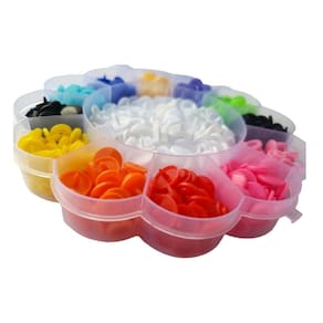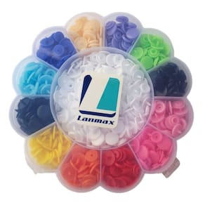 Kit Colorido 180 Botões Pressão Plástico Lanmax N12 Organizador com 13 espaços, são 12 cores 10 pares de cada cor, no total de 180 botões de Pressão 12mm redondos. Botões de ótima qualidade para uso em roupas de bebês, carteiras, bolsas entre outros. Para ser utilizado com alicate de pressão Cores: 60 Branco 20 Preto 10 Verde Claro 10 Lilás 10 Amarelo Claro 10 Azul Turquesa 10 Azul Claro 10 Amarelo 10 Laranja 10 Vermelho 10 Pink 10 Rosa Botões tamanho 12mm