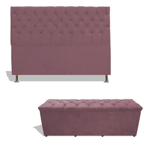 Kit Estrela Cabeceira De Cama Box Casal 140 Cm + Calçadeira Baú Suede Rosê Eli Móveis E Decoração - Rosa