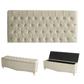 Kit Estrela Cabeceira De Cama Painel E Calçadeira Baú Botão Cristal Queen 160 Cm Suede Porcelana Eli Móveis E Decoração