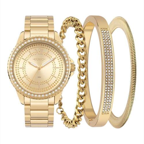 Brilhe com a sofisticação da Coleção Soul! Este relógio dourado é puro glamour: com mostrador na mesma tonalidade e caixa com aro trabalhado, ele ainda conta com aplicação de pedras que trazem um toque de luxo ao seu pulso. Um modelo marcante, ideal para mulheres que gostam de se destacar com estilo e elegância.