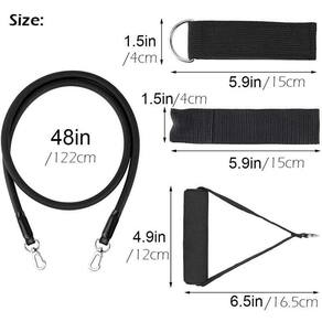 Características 1. Todas as faixas de exercício só podem ser usadas sozinhas empilhadas ou em qualquer combinação a um equivalente máximo de 150 libras. 2. O conjunto é projetado para fornecer todo o seu corpo com um treino intenso e esculpir o seu corpo usando a força natural da gravidade e seu peso corporal para resultados excepcionais. 3. Nossas faixas de treino são feitas do látex natural da mais alta qualidade 100% que é a resistência ao desgaste forte e a elasticidade perfeita não secarão, estalam, ou deformam. 4. Você pode usar as faixas de resistência com tiras de tornozelo e acessório de porta para se exercitar enquanto você em todos os lugares. Trazer-lhe os mesmos benefícios de um ginásio em um conveniente e acessível conjunto de equipamentos de treino em casa 5. Os tubos da resistência ajustados podem ajudar todos-homem ou fêmea, atleta profissional ou iniciante. Você pode usar o conjunto para yoga, aquecendo antes do exercício, treinamento de força ou reabilitação de fisioterapia.