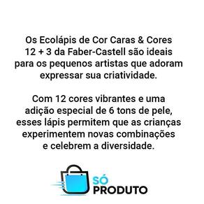 Os Ecolápis de Cor Caras & Cores 12 + 3 e os Ecolápis de Cor Tons Pastel são lápis de cor produzidos com madeira 100% reflorestada e certificada pelo FSC, que garantem o respeito ao meio ambiente. Ambos os lápis são atóxicos e não perecíveis, mas não são recomendados para crianças de até 3 anos, devido à presença de peças pequenas que podem ser engolidas ou aspiradas.