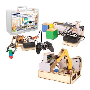 O ACEBOTT IoT STEM Smart Factory Starter Kit é um kit educativo de fábrica inteligente baseado em placa ESP32 Max 3.0, que integra eletrônica, programação, Internet das Coisas e automação em um conjunto único com estruturas em madeira 3D de fácil montagem. O kit permite criar cenários reais de fábrica, como linha de produção com esteira, braço robótico, armazém inteligente, sistema de classificação automática e simulação de logística e gestão de estoque, utilizando sensores de cor, sensores infravermelhos de obstáculo, RFID, display LCD 1602, servos MG90 e outros módulos eletrônicos. As peças de madeira são cortadas a laser, atóxicas e de superfície lisa, formando um modelo robusto e reutilizável que pode ser montado e desmontado em ambiente escolar ou em casa.