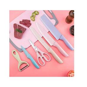 Kit Faca Cortador E Tesoura Colorida Para Cozinha Gourmet Kit de Facas e cortador de Cozinha. Sinta-se em sua cozinha um chef , cozinhando com uma das linhas mais caprichosas de facas. Facas de altíssima qualidade, rica em detalhes e texturas. Cada Peça proporcionando uma experiencia única e o que todos gostamos Características: - Lâminas Afiadas - Lâminas Inoxidável - Fácil de limpar e corta sem esforço carnes desossadas, frutas e todos os vegetais - Design bonito e elegante - Cada faca tem o equilíbrio distribuído de maneira bastante uniforme entre a lâmina e o cabo. - Pode melhorar a segurança e adicionar conforto e controle durante o uso. Especificações: Cor: Variadas Material: - Cabo: Plastico Polipropileno pp - Lâminas: Aço Inoxidável Dimensões Aproximadas: - Faca do Chefe Lâmina Comprimento: 20 cm Altura: 4 cm Cabo Comprimento: 12 cm Polegadas: 8 - Faca de Pão Lâmina Comprimento: 20 cm Altura: 4 cm Cabo Comprimento: 12 cm Polegadas: 8 - Cutelo Para Cozinha Lâmina Comprimento: 20 cm Altura: 4 cm Cabo Comprimento: 12 cm Polegadas: 8 - Faca de Legumes Lâmina Comprimento: 9 cm Altura: 2 cm Cabo Comprimento: 10 cm Polegadas: 3,5 - Tesoura Comprimento: 20 cm - Descascador Comprimento: 15 cm Marca: Não Informado