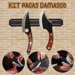 Kit faca e cutelo aço damasco cabo madeira cozinha churrasco