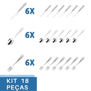 Kit Faca Garfo Colher Aço Inox 18 Peças Bar / Restaurante