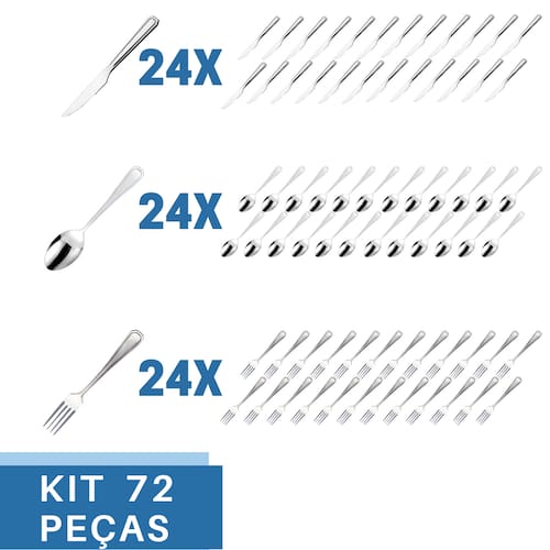 Kit Faca Garfo Colher Aço Inox 72 Peças Bar / Restaurante