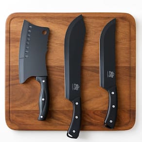 O Kit Facas Para Churrasco 3 Peças Black RMaisCasa é a escolha ideal para quem busca desempenho, resistência e elegância em cada corte. Com design moderno e acabamento sofisticado na cor preta, este conjunto foi desenvolvido para proporcionar a melhor experiência durante o preparo de carnes, desde o corte mais delicado até os trabalhos mais pesados.