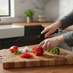 Cutelo Black: robusto e potente, indicado para cortes mais firmes, separação de ossos e alimentos de textura mais densa.