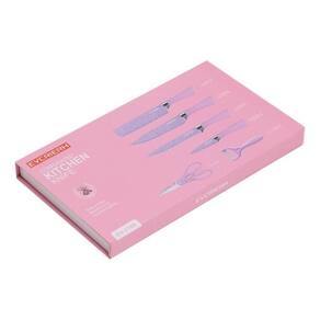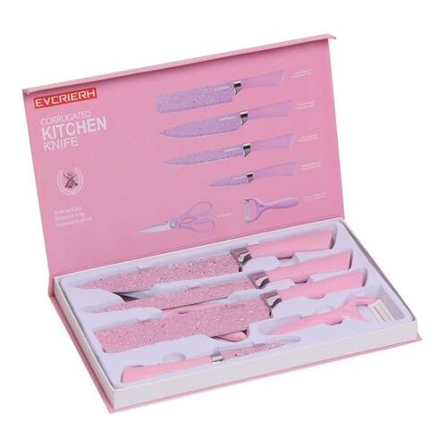 Este conjunto de facas é ideal para cortar frutas, legumes e carne. As lâminas são feitas de aço inoxidável de alta qualidade com um revestimento antiaderente Rosa, o que facilita a limpeza.