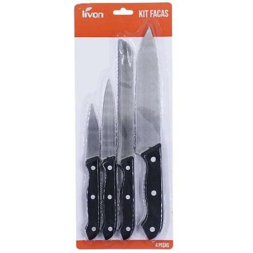 Kit Facas 4 Peças Em Aço Inox Livon