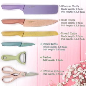 Jogo de Facas Gourmet 6 Peças Colorido - Aço InoxElegância, Praticidade e Alta Qualidade na Sua Cozinha!Facas feitas com material de alta qualidade, combinando sofisticação visual com design diferenciado e alta para todos, desde cozinheiros casuais até chefs profissionais!Dimensões das Peças:Faca do Chef: Comprimento: 25 cm x Largura: 4 cmFaca de Pão: Comprimento: 23 cm x Largura: 3 cmFaca de Legumes: Comprimento: 18 cm x Largura: 2 cmCutelo para Cozinha: Comprimento: 24 cm x Largura: 4 cmTesoura: Comprimento: 19,5 cm x Largura: 8,5 cmDescascador: Comprimento: 14 cm x Largura: 7 cmCaracterísticas do Produto:Alta Qualidade: Facas com lâminas afiadas em aço inoxidável, garantindo durabilidade e precisão no Ergonômico: Cabos confortáveis e seguros, proporcionando maior controle e facilidade de uso.Tesoura Multifuncional: Ideal para diversos tipos de cortes, com lâminas robustas e afiadas.Descascador Eficiente: Perfeito para descascar frutas e legumes rapidamente, sem desperdíácil Manutenção: Peças resistentes à corrosão e fáceis de limpar, compatíveis com máquina de lavar louçícios:Versatilidade: Um conjunto completo para atender todas as suas necessidades na ência: Facas afiadas que cortam com precisão, facilitando o preparo dos alimentos.Durabilidade: Material de alta qualidade que garante longevidade ao conjunto.: Cabos antideslizantes que proporcionam durante o Inclusos:4 Facas de diferentes tamanhos e funções1 Tesoura multifuncional1 Descascador de legumesTransforme a sua experiência na cozinha com o Jogo de Facas Gourmet 6 Peças Colorido.Adquira já o seu e aproveite esta especial! Garanta a qualidade e a praticidade que você merece.