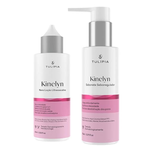Descrição do Kit Kinelyn: Sabonete Seborregulador e Nano Loção Ultrassecativa Tulipia Cosmeticos
