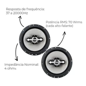 - Potência RMS: 70W Wrms (cada alto-falante)