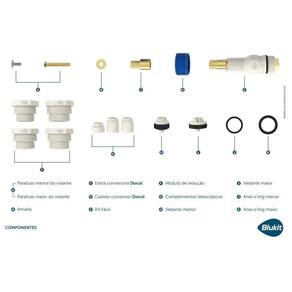 O Kit Fácil Salva Registro 9 em 1 é a solução com melhor custo-beneficio para solucionar problemas no registro o mecanismo que abre e fecha o chuveiro ou até mesmo de vazamentos no chuveiro. As peças do Kit Fácil Salva Registro foram desenvolvidas no conceito Lego, ou seja, você poderá combiná-las e formar uma nova, conforme sua necessidade. Apesar do Kit possuir muitas peças, o manual de instrução é bem completo para auxiliar na montagem, mas se ficar em dúvida, consulte um profissional da área para lhe auxiliar. Especificações Tecnicas: Marca: Blukit Modelo: 9 em 1 Ref: 061403 Acabamento: Nao acompanha Marca: Não Informado Ean: 7897210485832