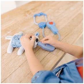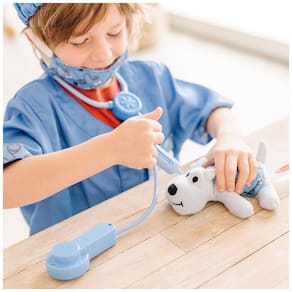 Seu filho ou filha pode se tornar um veterinário de brinquedo com este conjunto de fantasias da Melissa Doug. O conjunto inclui uma jaqueta azul lavável, máscara e touca cirúrgica, estetoscópio com efeitos sonoros, seringa, termômetro, curativo, crachá veterinário reutilizável, cachorro de pelúcia paciente e muito amor para dar. A fantasia é feita com materiais de alta qualidade e montada com padrões de fabricação precisos para garantir durabilidade. É fácil de limpar, podendo ser lavada na máquina. Este conjunto é um ótimo presente para crianças de 3 a 6 anos e um ótimo complemento para sua caixa de roupas de vestir para meninas e meninos. A Melissa Doug é conhecida por criar produtos lindamente projetados para estimular a imaginação e a criatividade, e este conjunto é um exemplo perfeito disso. Adicione a fantasia de Melissa Doug Fire Chief RolePlay para completar a experiência de simulação. Atente-se ao tamanho da fantasia: altura 50 cm, largura 43 cm, comprimento da manga 16 cm