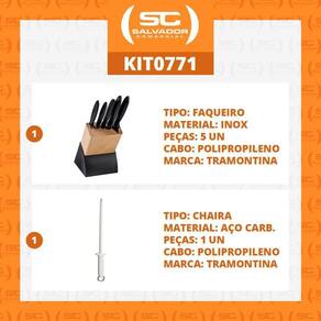 1 - Jogo de 6 PÇ (4 facas, 1 garfo e Suporte de Madeira Plenus) - Tramontina 23498028