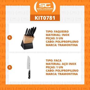 Jogo de 6 PÇ (5 pç e Suporte de Madeira Plenus) Lâminas Inox Cabos Polipropileno - Tramontina 23498028