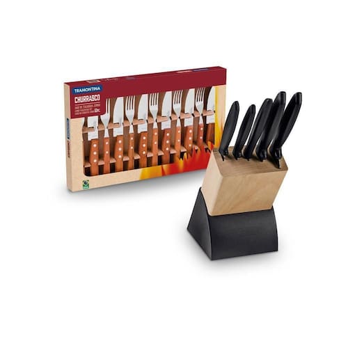 1 - Jogo de 6 PÇ (4 facas, 1 garfo e Suporte de Madeira Plenus) - Tramontina 23498028