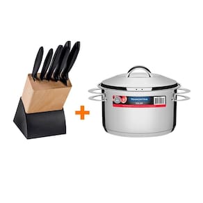 Jogo de 6 PÇ (5 pç e Suporte de Madeira Plenus) Lâminas Inox Cabos Polipropileno - Tramontina 23498028