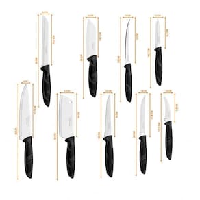 Jogo Facas em aço inox cabo Preto Cozinha Gourmet Plenus 9 Peças 23498048 Tramontina