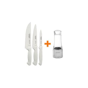 Jogo de Facas Premium com Lâminas em Aço Inox e Cabos de Polipropileno Branco 3 Peças - Tramontina 24499811