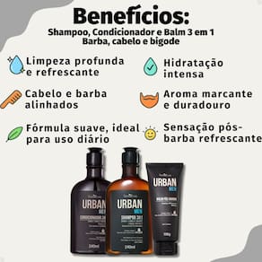 Descubra a praticidade e eficiência do Kit Farmaervas Urban Men: Shampoo, Condicionador e Balm, a solução completa para os cuidados diários de barba, cabelo e bigode do homem moderno. Desenvolvido pela FARMAERVAS, este kit oferece uma experiência de higiene e tratamento inspirada nas melhores IPAs, garantindo fios e pelos limpos, hidratados e com um aroma agradável. Ideal para quem busca otimizar a rotina sem abrir mão da qualidade, o Shampoo Urban Men e o Condicionador Urban Men, que juntos proporcionam maciez, brilho e alinhamento, transformando o cuidado pessoal em um momento de puro bem-estar. O kit é complementado com um Balm para cuidados adicionais.