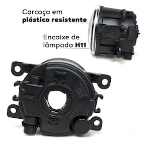 Especificações Técnicas: - Material Lente: Policarbonato; - Textura da lente: Lisa; - Material Carcaça: Plástico; -Encaixa da Lâmpada: H11 (Não Inclusa); -Suporta Lâmpadas de até: 55W; - Tipo de Regulagem: Manual; - Modelo do botão: Similar ao universal; - Cor botão: Verde/Laranja; - Observação: Moldura prata