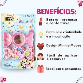 Nome do Produto: Kit Fenzza Disney Minnie: Paleta de Sombras e Batom Ref. DIS052