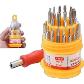 Composto por 31 pontas de chaves diversas, como fenda, philips, torx e allen, este kit é altamente versátil e prático.
