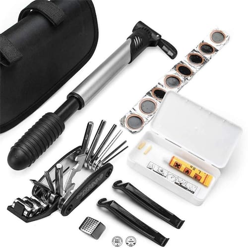 Especificações Chaves: Multe funções: Chave de Fenda e Philips Chave Allen 2 / 2,5 / 3 / 4 / 6mm Soquete Sextavado, ou chave Pito 8 / 9 / 10mm Chave de Boca 8 / 10 / 13 / 15mm Kit: Bomba de ar Kit de reparo de pneus Chave de boca dupla Alavancas de remoção de pneus Estojo protetor Dimensões aproximadas 22x10x5cm Itens inclusos: 1 Bolsa 1 Kit Chaves 1 Chave de boca dupla 1 Mini Bomba de ar 2 Espatulas 1 Estojo com kit reparo Ean: 7882513154103