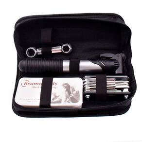 - O kit inclui um estojo protetor, um kit de chaves, uma chave de boca dupla, uma mini bomba de ar, um estojo com kit de reparo de pneus com 8 reparos e duas espátulas de plástico.