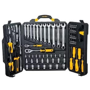 Composto por 110 peças fabricadas em Aço Cromo Vanádio de alta qualidade. O Aço Cromo Vanádio é um material reconhecido pela sua durabilidade e resistência, sendo amplamente utilizado na fabricação de ferramentas profissionais.