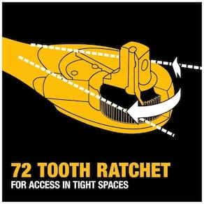 Conjuntos de soquete têm 72 dentes de catraca dando uma oscilação de arco de 5 graus para manobrabilidade em áreas restritas