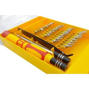 Além disso, o kit conta com chaves hexagonais allen, nos tamanhos H1.3, H1.5, H2.0, H3.0 e H4.0, que são muito utilizadas em dispositivos eletrônicos. A chave triangulo, no tamanho 2.3, e a chave u2, no tamanho 2.6, também fazem parte deste conjunto.