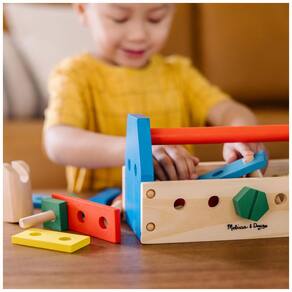 Este conjunto de ferramentas para crianças inclui 24 peças, como pregos, parafusos, porcas e pernos de madeira, além de um martelo, chave inglesa e chave de fenda. A caixa de ferramentas com alça é resistente e ideal para guardar todos os equipamentos. As crianças em idade pré escolar podem desenvolver habilidades motoras finas, destreza manual, coordenação olho mão, reconhecimento de cores, formas e letras, bem como habilidades de contagem. É um ótimo presente para crianças de 3 a 5 anos e pode ser combinado com o conjunto Melissa Doug Wooden Construction Building para mais diversão sem tela. A Melissa Doug tem mais de 30 anos de experiência na criação de produtos que estimulam a imaginação e a criatividade, sendo referência na primeira infância.