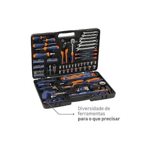Conteúdo da embalagemO jogo 108 peças dexter acompanha 1 chave inglesa 6 150mm , 1 alicate bomba d'água 8 200mm , 1 alicate universal 6.1/2 160mm , 1 alicate descascador de fios e cabos 8.1/5 205mm , 1 chave phillips ph2x75mm, 1 chave de fenda sl5x75mm, 1 chave phillips ph1x38mm, 1 chave de fenda sl6x38mm, 1 punho catraca, 1 nível alumínio 300mm 2 bolhas com pontas emborrachadas, 1 martelo 25mm 300g com cabo de fibra, 1 arco de serra 6 150mm , 1 chave catraca cabo bimaterial, 1 fita isolante 5m, 1 estilete 18mm, 5 chaves de precisão ph0, ph1,sl1mm,sl1.6mm,sl2mm , 1 chave teste 100-250v, 1 trena 3m, 2 grampos multiuso 90mm, 2 grampos multiusos 64mm, 6 chaves combinadas 8, 9, 10, 11, 12 e 13mm , 1 adaptador de soquete 1/4 macho para 3/8 fêmea , 1 adaptador de soquete 3/8 75mm, 1 suporte para bit 60mm, 1 soquete longo 3/8 21mm, 11 soquetes 1/4 4, 4.5, 5, 5.5, 6, 7, 8, 9, 10, 11, 12mm , 9 soquetes 3/8 10, 11, 12, 13, 14, 15, 16, 17, 18mm , 1 jogo com 10 bits 25mm pz0, pz1, pz2, pz3, h3, h4, t20, t25, t30, t40 , 1 jogo com 10 bits 25mm ph0, ph1, ph2, ph3, h5, h6, sl3, sl4, sl5.5, sl6 , 1 jogo com 10 bits 25mm ph1, ph2, ph3, sl3, sl4, sl5.5, sl7, t20, t25, t30 , 1 jogo com 10 bits 50mm ph1, ph2, ph3, sl4, sl5, sl6, t10, t15, t20, ad e 1 jogo com 11 chaves allen 1.27, 1.5, 2, 2.5, 3, 3.5, 4, 4.5, 5, 5.5, 6mm .