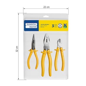 Aprimore o seu trabalho manual e reparos com o Kit Ferramentas Master Alicates Tramontina 43409107, o conjunto ideal para quem valoriza versatilidade e padrão de excelência. Perfeito para eletricistas, mecânicos, hobbistas e para o uso doméstico, este trio de alicates essenciais facilita a execução de tarefas complexas. O kit cobre as principais necessidades de prender, cortar e torcer fios e peças. A combinação estratégica de bicos e cortes assegura precisão no manuseio, vital para a segurança e acabamento de seus projetos.