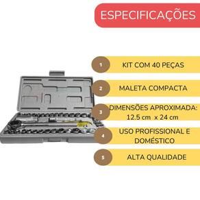 Kit Ferramentas Multifuncional Chave Canhão Soquetes 40 pçs Kit de Ferramentas Multifuncional com Chave de Catraca - 40 Peças