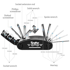Kit Ferramentas Multifuncional para Bicicletas 16 em 1, WOTOW FBALBK97, Cinza escuro