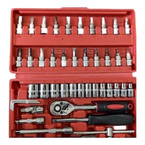 Completo e Versátil: Com 46 peças, incluindo soquetes, chaves de fenda, chaves inglesas e mais, você terá todas as ferramentas essenciais ao seu alcance.