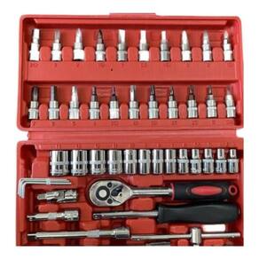 Eleve suas habilidades de reparo e manutenção com o Kit Jogo Chaves Soquete Aço Catraca Com Maleta 46 Peças. Não importa o trabalho, você estará preparado.