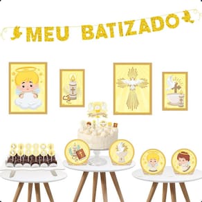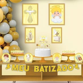 O Kit Festa Fácil Batizado é perfeito para tornar a celebração desse momento especial ainda mais encantadora. Com elementos decorativos detalhados e um toque divino, esse conjunto proporciona uma decoração elegante para momentos abençoados.