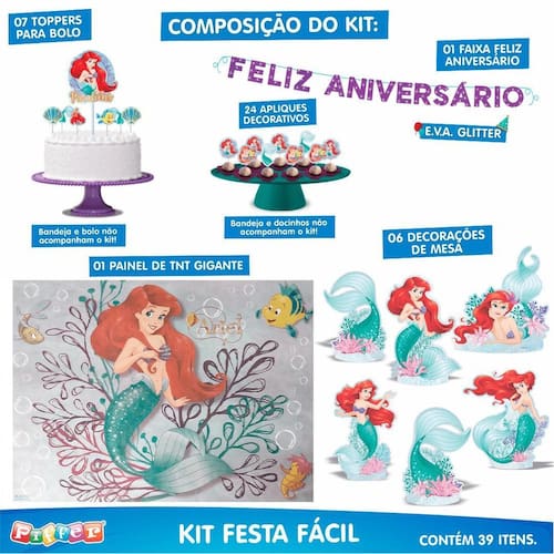 Kit festa fácil ariel pequena sereia - produto licenciado