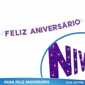 01 painel tnt gigante com 1,40 x 1,03 24 palitos decorativos para docinhos 01 faixa feliz aniversário glitter 07 toppers para bolo 06 decorações de mesa