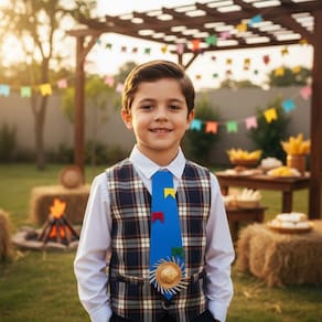 Monte um look junino completo, criativo e super divertido com o Kit Festa Junina Gravata Caipira + Retalhos Autocolantes! Esse combo é perfeito para quem quer praticidade na hora de montar a fantasia.