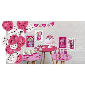 Kit Festa Só Um Bolinho Barbie - FesticolorCada Kit traz 90 peças distribuídas em25 - Balões - Bexigas - látex - tamanho 9 polegadas40 - Portas Forminhas - papel offset08 - Decorações de Mesa - papel cartão - aproximadamente 22 cm x 15 cm04 - Topo de Bolo - papel cartão - tamanhos diversos01 - Faixa Decorativa - papel cartão e barbante - 2,40 m x 19 cm04 - Quadros Decorativos - papel cartão - 21 cm x 31 cm08 - Caixas Surpresas - 9 cm x 5 cm x 13 cmSUPER DICACada Balão de Látex tem seu tamanho descrito em POLEGADAS.RESPEITE-OS e siga as orientações dos fabricantes nas embalagens.Desta forma, você evitará perdas e aproveitará ao máximo seus Balões