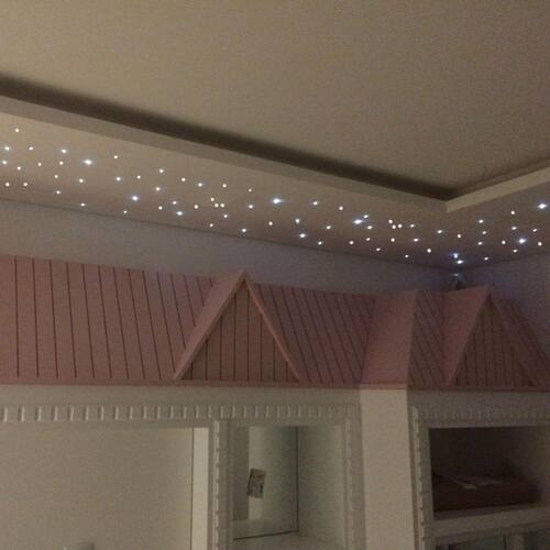 O Kit De Iluminação Noite Estrelada Fibra Ótica conta com 100 estrelas de fibra otica para o efeito estrelado. Muito utilizado na arquitetura e paisagismo como iluminação decorativa, deve ser aplicado em forros e painéis de gesso, madeira ou qualquer outra superfície de fácil furação. Ótima ideia para decorar o quarto infantil, do casal, salas de banho, home theater, spa, entre outros. O conjunto Noite Estrelada conta com fonte de luz Led com filtro interno para melhor contraste, resultando em uma perfeita nitidez da cor. Equipamento totalmente confeccionado em alumínio e tomada de alimentação com plug ac proporcionando uma melhor segurança e proteção de sua instalação. Possui encaixe perfeito para receber o conjunto de fibras óticas e funcionamento Bivolt. Qual o diferencial deste kit As fibras de diferentes calibres fornecidos neste kit simularão algumas estrelas maiores e menores, lindo efeito estrelado mais real de uma perfeita noite estrelada, os terminais estrela que acompanham o kit farão o efeito de estrelas maiores. Características: - 100 pontos de luz, sendo : 50 cabos de 1m e 50 cabos de 2m - Equipamento iluminador profissional no kit - Fibras óticas super flexíveis e perfeita definição de pontos luz - Broca produzida em aço rápido permite fácil perfuração - Produto da maior empresa especialista em noite estrelada do Brasil Especificações técnicas Marca: noite estrelada / inovva iluminação interiores Quantidade: 100 pontos de luz - estrelas Cor: branco frio Iluminador super led Voltagem: bivolt Potencia: 5w - novo chip cree led Dimensões aproximadas do equipamento lxaxc : 7 x 6 x 8 cm Área indicada: 2 a 3 m Itens inclusos 01 equipamento iluminador compacto em alumínio com plug tomada ac, 01 conjunto com cabos de fibra ótica com fibras 50 cabos de 1m/50 cabos de 2m 4 Estrelas maiores de 5mm de diâmetro 01 broca de 0.8 mm, 01 tubo de cola, 01 manual de instalação completo 01 certificado de do fabricante. : 1 ano no equipamento e 12 anos no cabeamento Instalação - Infra Estrutura Necessária Para a instalação é necessário um ponto de energia rebaixo gesso/madeira/pvc e um vão livre de pelo menos 12cm, por trás da superfície que deve estar com pintura/acabamento final pronto. Sobre a Inovva Interiores A Inovva é especializada em iluminação com fibra ótica e led. Com a missão de disponibilizar aos clientes o que há de melhor e mais moderno no segmento, a Inovva está sempre aprimorando seus produtos para tornar a tecnologia acessível a todos. Os kits para efeito e simulação estrelado são confeccionados com as melhores matérias-primas do mercado. Para acessar todos nosso produtos com a qualidade inovva - na busca digite - noite estrelada fibra otica Marca: Noite Estrelada Inovva Interiores